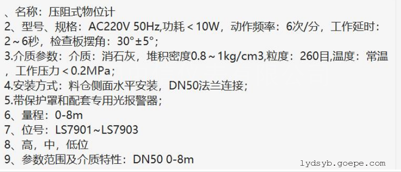 |   | 重量:3 kg |   | 用途:高、低料位报警  |   |  |   |